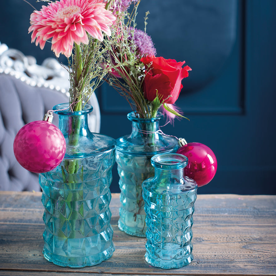 Vase 2ass. 'liselot' petrol blue h16 d6 cm